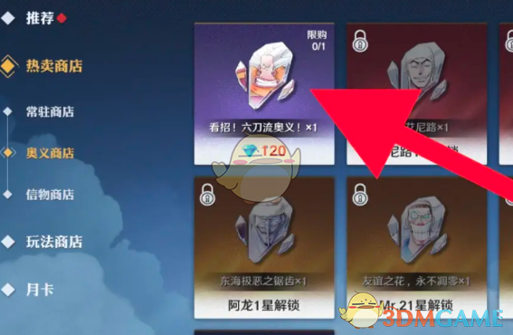 2、在奥义商店页面的右侧物品栏中找到想要获取的奥义技能。