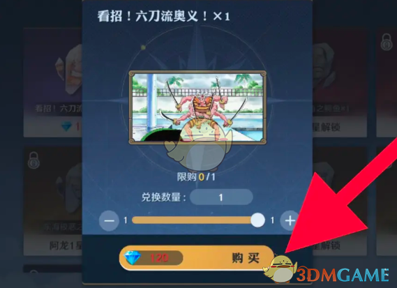 3、点击进入到奥义技能的弹框页面,点击下方的购买即可消耗蓝钻石购买获得。