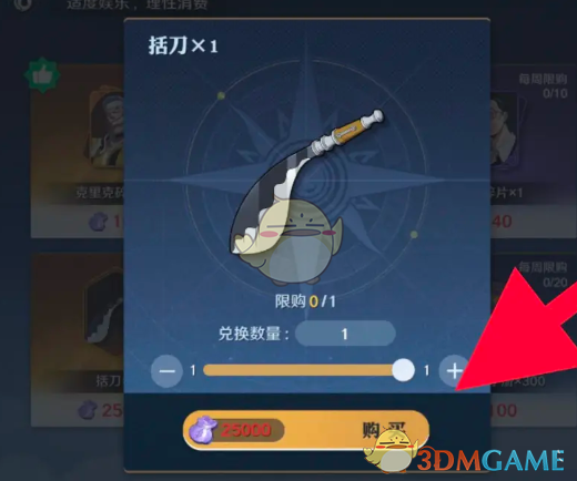 3、点击进入到括刀的详情页面,点击购买,支付25000代币即可获得。