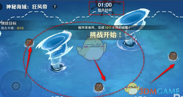 2、花费货币道具进入后,可以查看我们的挑战目标,是在指定时间内躲避龙卷风;