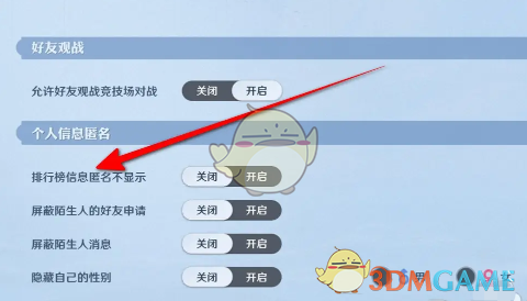 3、在银色设置页面即可看到排行榜信息匿名不显示,滑动按钮关闭即可。