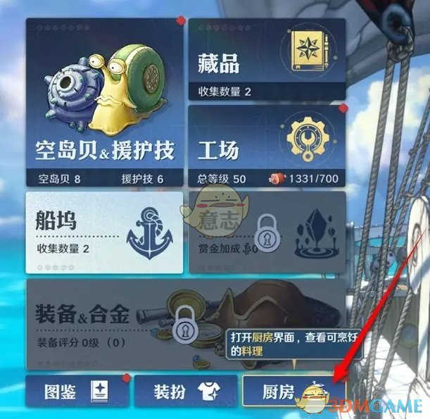 2、接着在弹出的菜单栏详情页内,点击厨房功能前往;