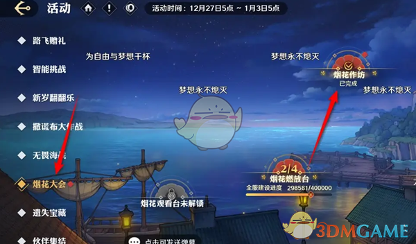 2、然后在活动页面,找到烟花大会,点击烟花作坊玩法前往;