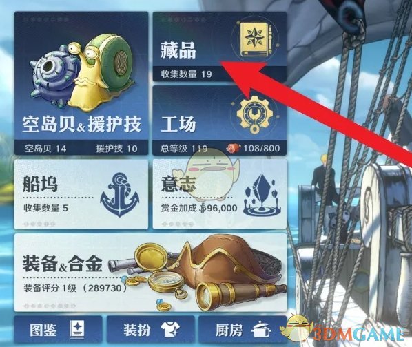 2、在菜单栏页面,点击上方的藏品功能;
