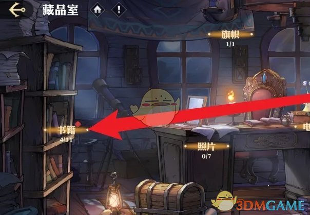 3、接着在藏品室中,点击左侧的书籍前往;