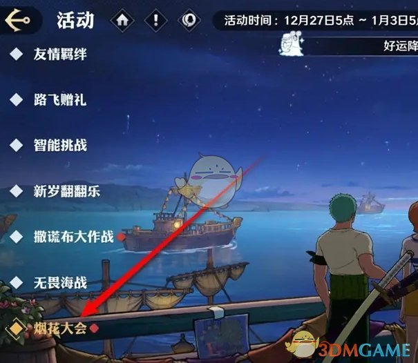 航海王壮志雄心怎么在烟花大会活动中燃放烟花呢?烟花大会活动是游戏最近上线的限时玩法,燃放烟花,捐献材料建设设施,即可累计全服进度来领取奖励,在烟花大会内燃放烟花也可以领取新年福袋奖励,那么怎么在活动内燃放烟花呢?下面就让小编给大家带来《航海王壮志雄心》烟花大会活动燃放烟花方法,感兴趣的继续往下看看吧。