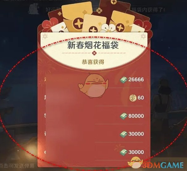 4、放完烟花后,就可以领取新春的烟花福袋奖励。