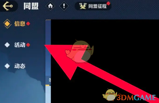1、首先我们需要进入游戏主页面,在同盟界面,点击活动图标进入。
