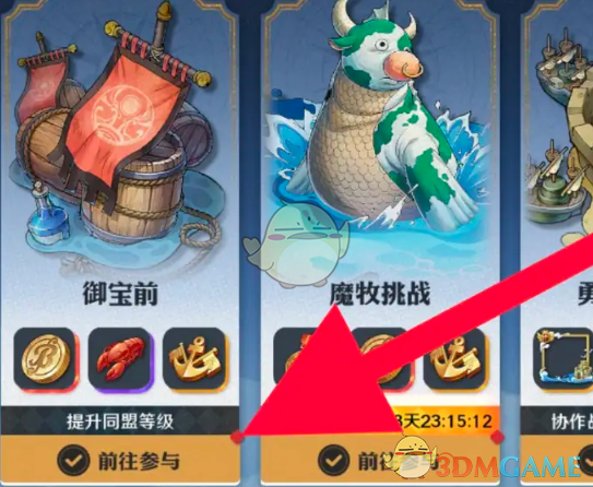 2、然后在左侧的页面找到御宝前,之后点击下方的前往参与。