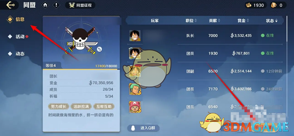 2、然后在同盟详细页内,点击右下角的前往同盟玩法;