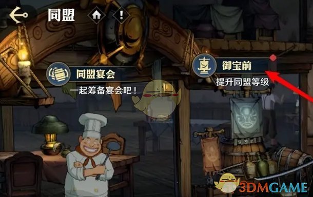 2、接着在同盟玩法内,找到御宝前,前往玩法详情页;