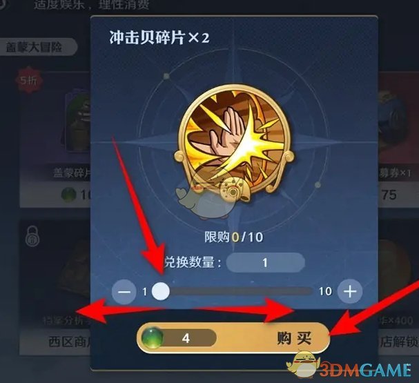 3、4个珍珠可以兑换2个碎片,最多可购买10次。