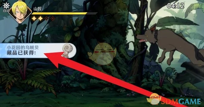 3、接着在战斗的过程中,点击发光的拾取按钮,拾取后即可获得小花园的乌贼贝;