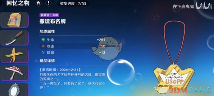 3、撒谎布名牌藏品效果:生命+251、攻击+50、防御+12