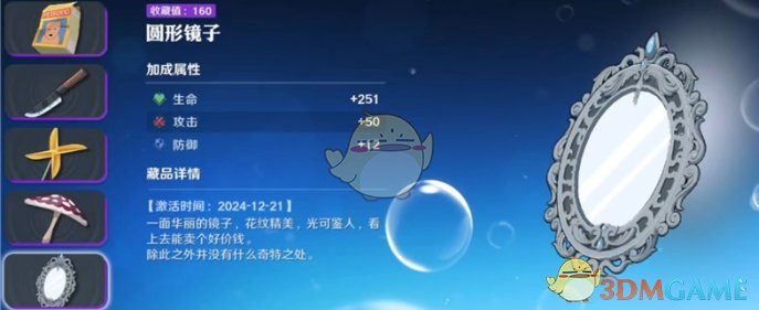 3、圆形镜子藏品效果可带来生命加成效果,附带攻击和防御属性;