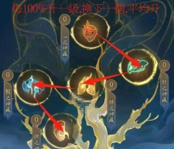 3、神藏:均衡升级,升一大级,换一个神藏,保证平均升级神藏总等级。