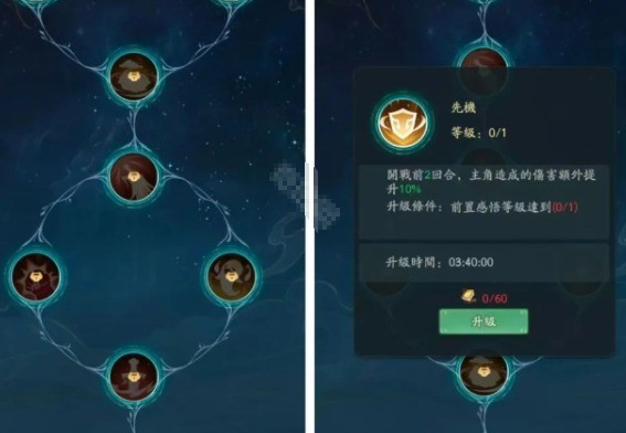 类似道途,升级后可以解锁一些属性加成,以及会有一些局内技能,比如气定:血量低于60%时,受到的伤害额外降低8%