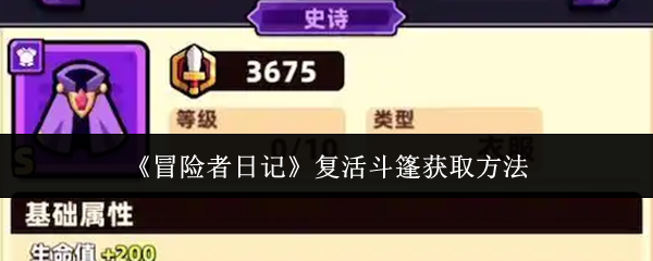 冒险者日记复活斗篷怎么获取?很多的玩家在寻寻觅觅之后,依然没有办法找到合适的方法,甚至不知道所在的位置,当大家在分析之后,才可以知道用什么样的方法才能够正确的获取,有兴趣的小伙伴们全部都可以一起来看一下。