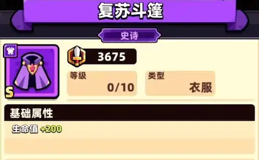 这个复苏斗篷的实力还是非常出色的,可以增加200生命值,还可以增加10%的全局生命。在战败之后还可以以20%的生命,然后再一次的复苏,不过只能够生效一次,第2次就没有任何的作用。