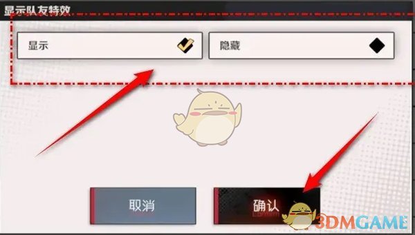 4、最后在显示队友特效页面,勾选显示或者是隐藏,点击确认即可完成设置;