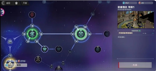 想要装备能升级必须得把这两个绿色天赋给点亮,不然开放不了