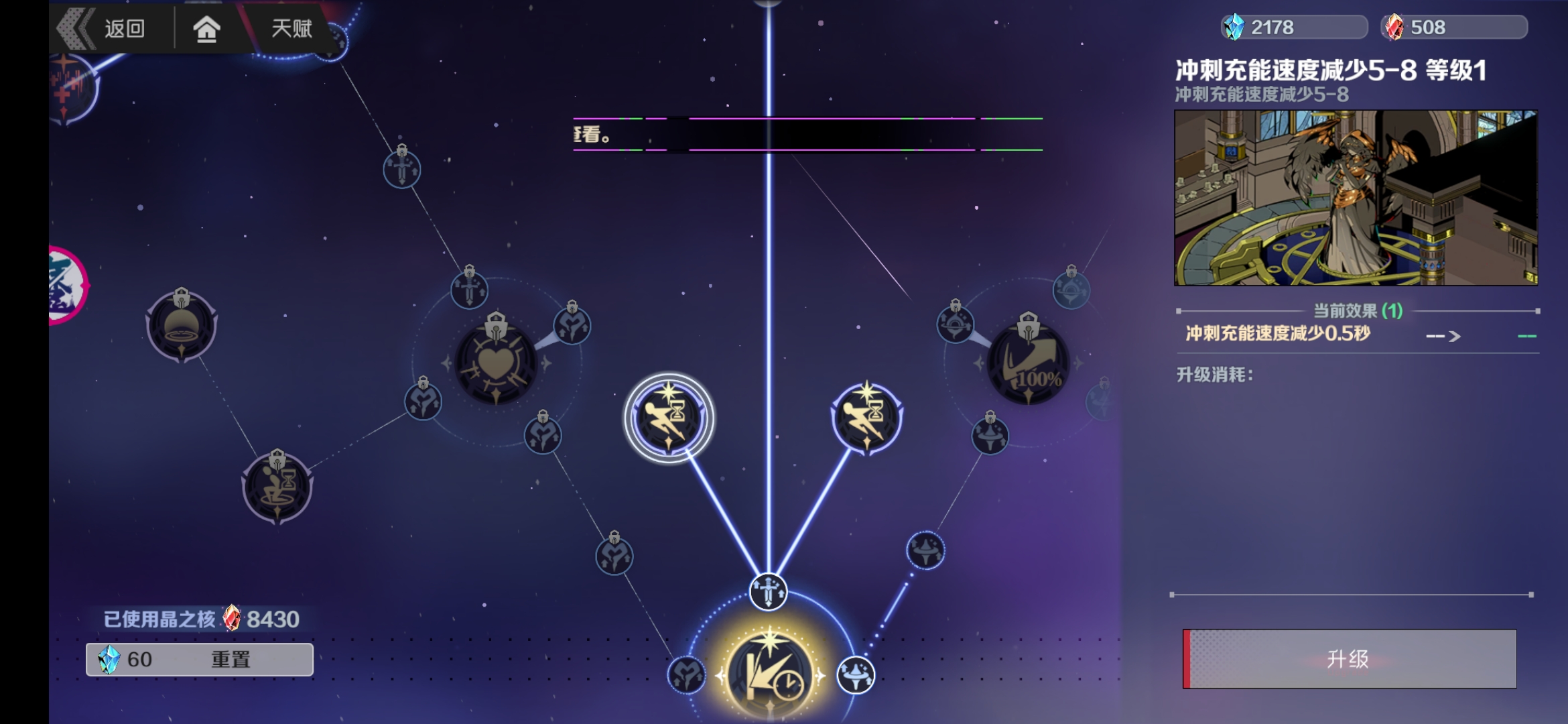 3、之后点好完美眩晕和两颗减冲刺冷却小符文,把BOSS推上墙后可以多出3s输出时间,冲刺冷却减少更加灵活应对BOSS的狂轰滥炸。