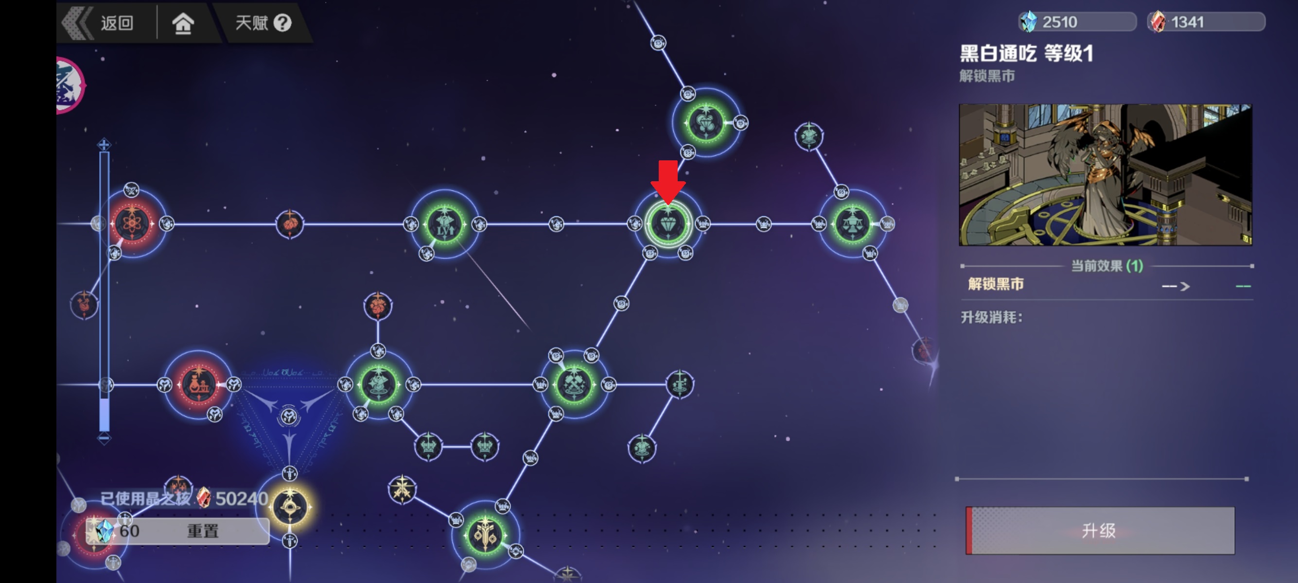 PS:点出黑市天赋后,我们可以每天从黑市内购买3600个晶之核,可以更快解锁其他天赋。