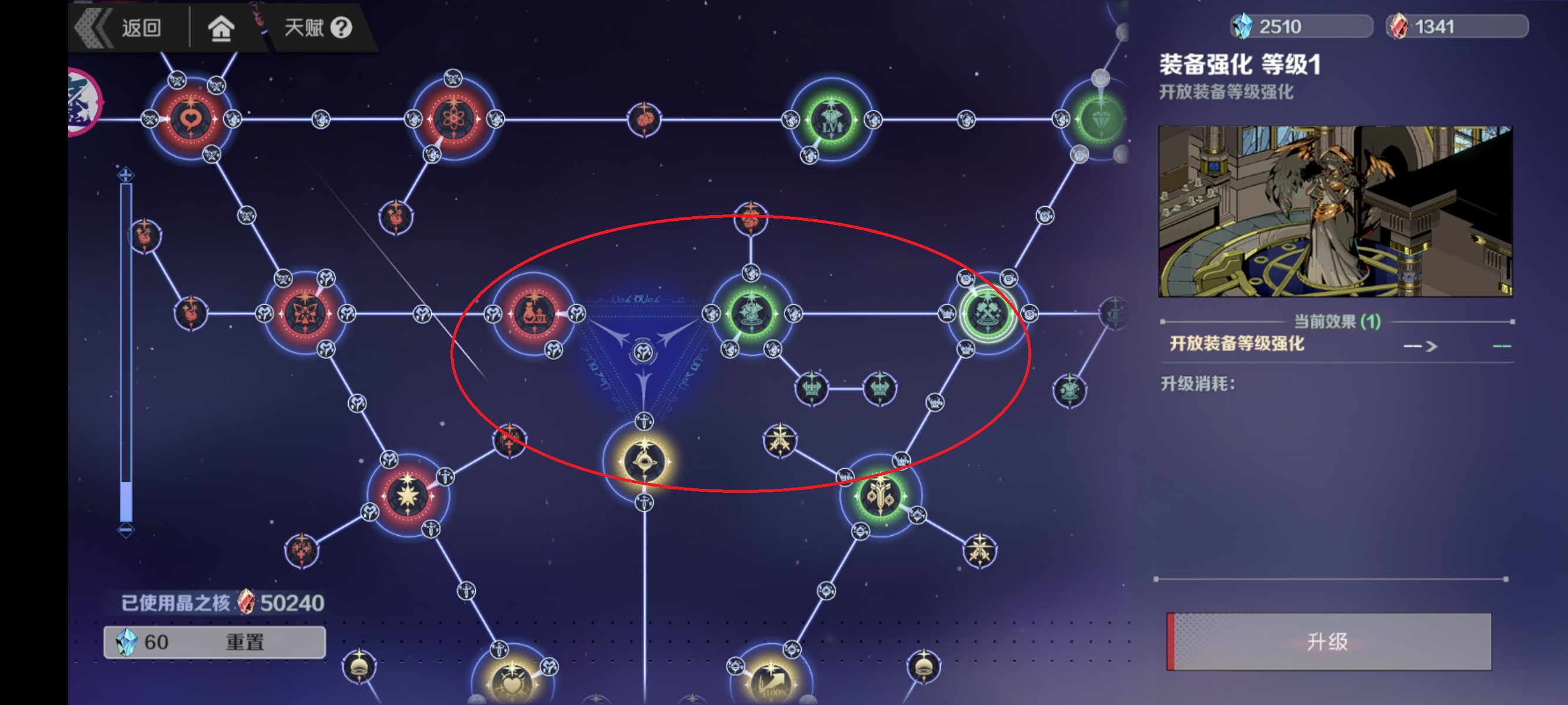 天赋系统解锁后,我们需要先讲上图所示中心4个大天赋点亮。