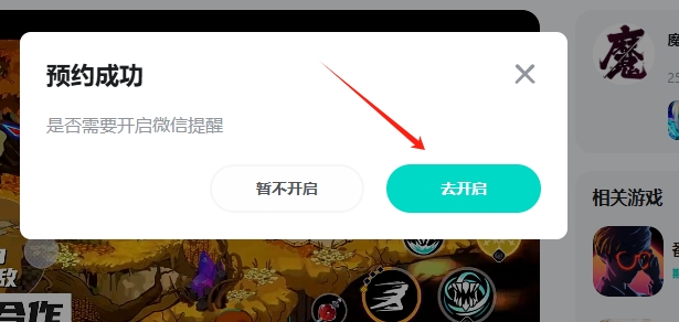 2、预约成功后,就会显示预约成功的提示,等开服后即可领取奖励。