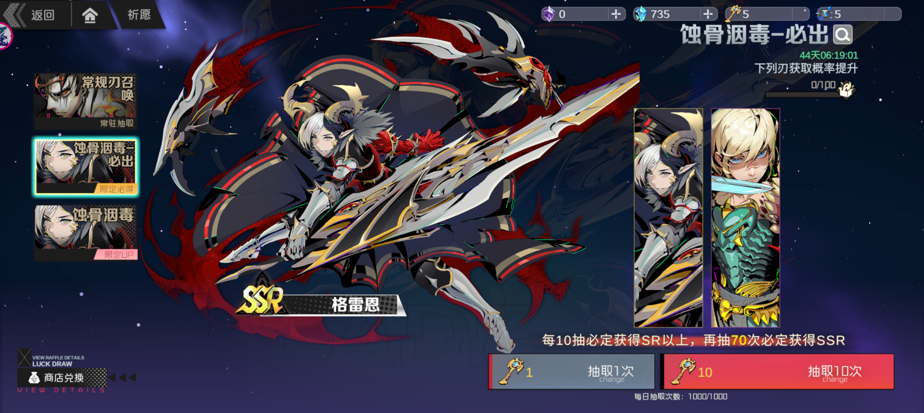满100抽后随机获得一把可兑换的SSR刃