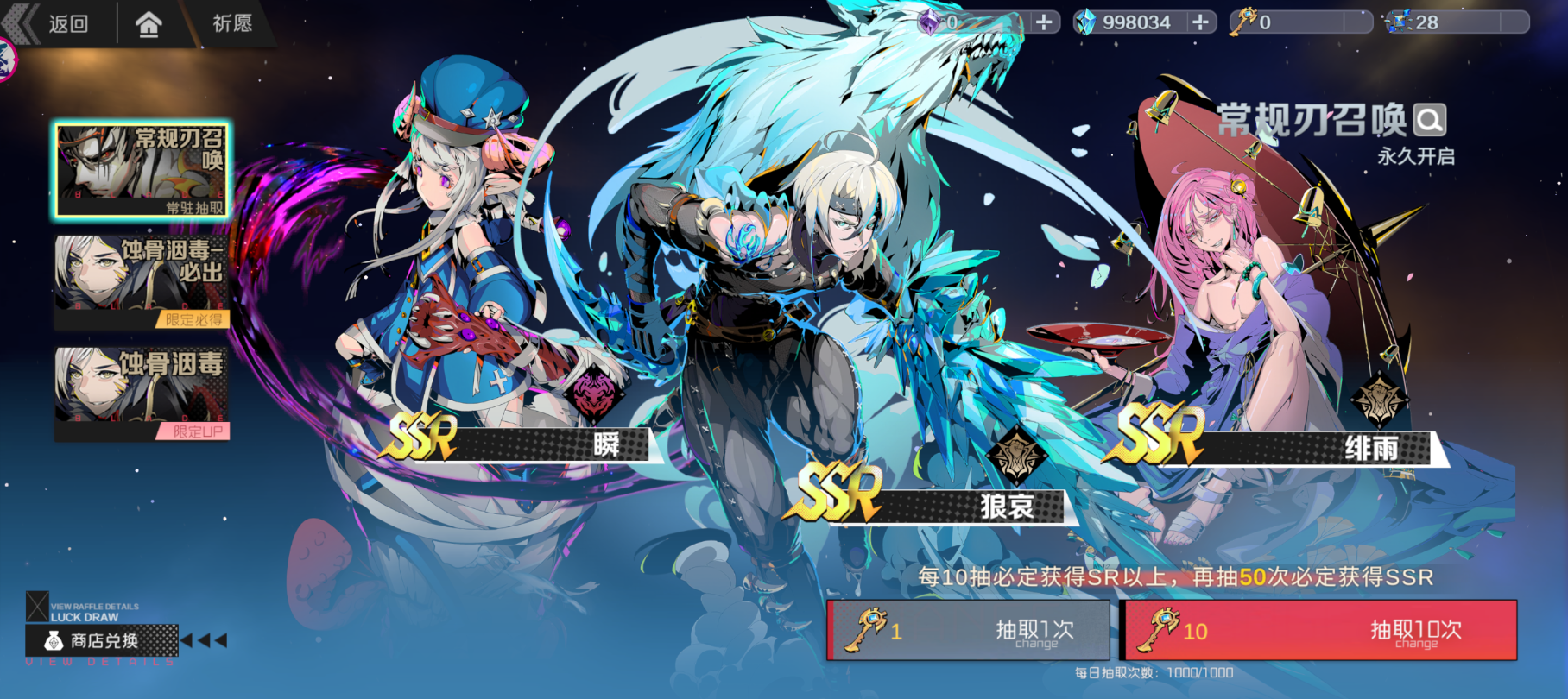 3、新增限定必得池,UP池不再歪,相较于其他UP池,该池子的保底数为70。在限定必得池抽到SSR,必为当期UP刃。且UP池内每进行100次抽卡,额外赠送随机一把兑换池中的SSR。