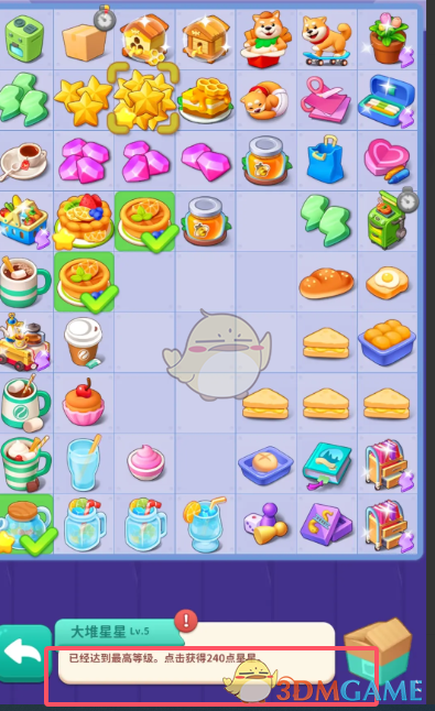 请将小星星升至最高等级(LV5)后,再点击即可直接领取大量星星奖励哦!LV.5级别的大星星可以带给玩家240点经验值。