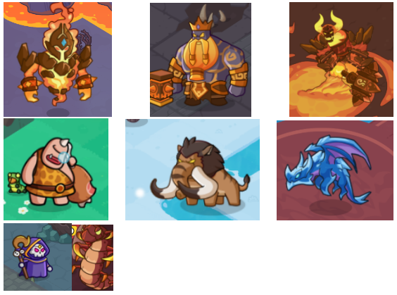 每5/9尾数的层数将出现Boss,其他1、2、3、4、6、7、8层均为小怪层;Boss共有8个,分别是矮人王、食人魔、冰霜巨龙、猛犸巨象、骷髅法师、熔岩领主、熔岩巨虫、炎魔大帝。