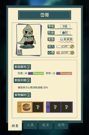 捕虫体力心情消耗减幅20%