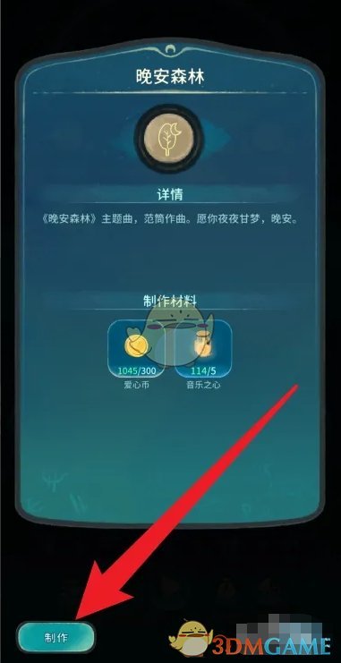 4、最后点击左侧的制作,即可解锁晚安森林的主题曲啦。