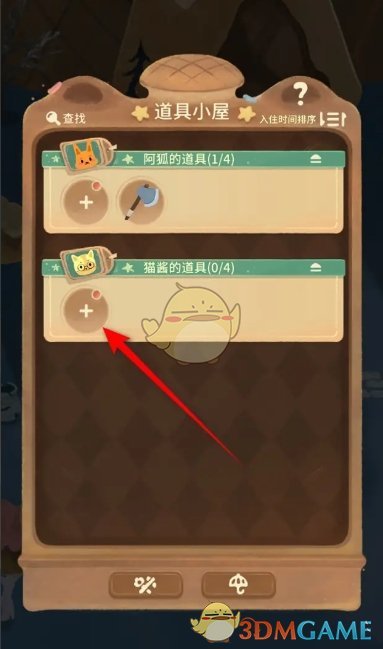 2、然后在道具小屋内,点击猫酱的道具,继续点击下方的加号;