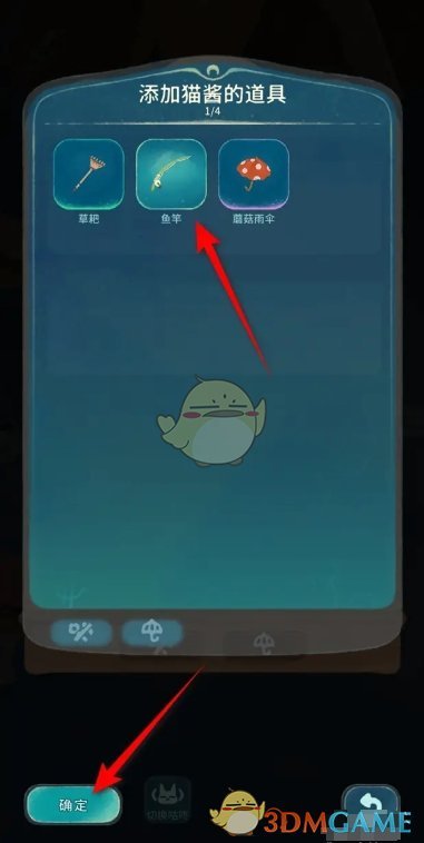 3、然后在添加猫酱的道具中,选择鱼竿进行添加;