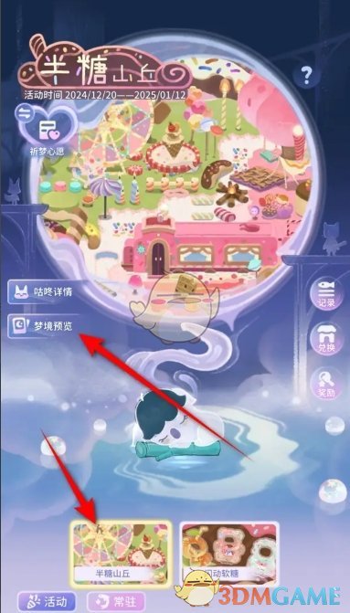 2、接着在祈梦玩法内,点击梦境预览,继续点击下方的预览梦境;