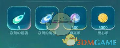 夜莺的翅羽*5、夜莺的尾羽*5、月亮币*500、爱心币*5000