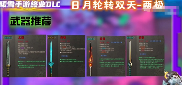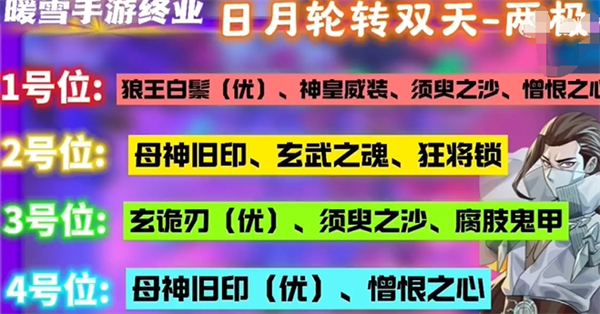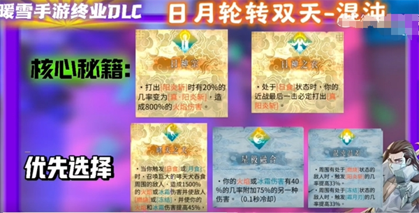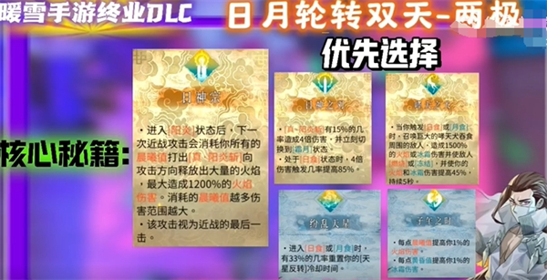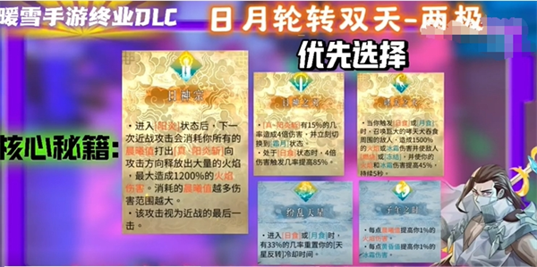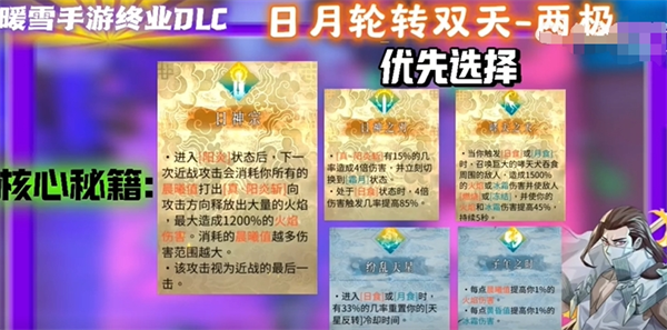 以上就是小编整理带来的《暖雪》手游终业DLC新流派日月轮转双天开荒攻略,更多精彩内容,请点击关注手游网,小编将持续为您更新!