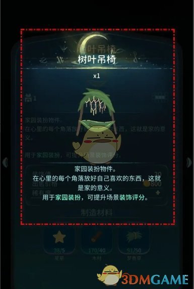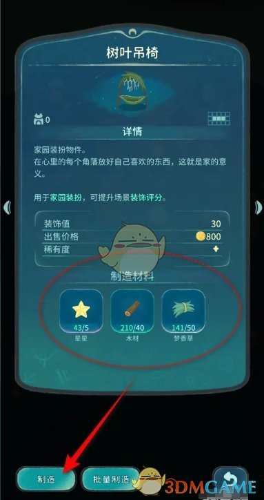 4、最后点击制作即可获得树叶吊椅这个家园装饰物品了。