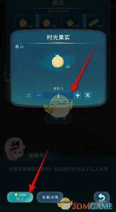 4、最后花费1000金币即可购买时光果实,注意在商店内该道具永久限购5个;