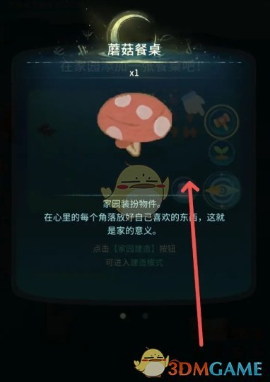 2、接着在建造玩法中,选择家园道具,找到蘑菇餐桌进行制作;
