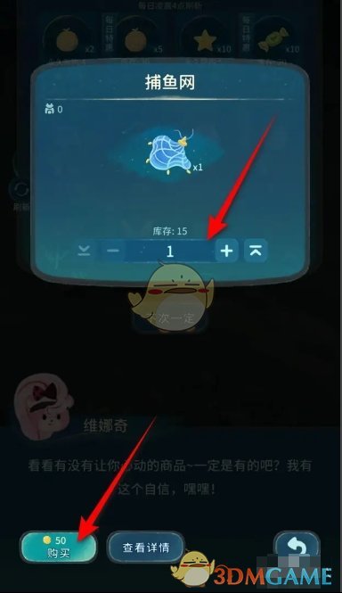 4、最后花费50个金币,点击左下角的购买即可获得捕鱼网了;