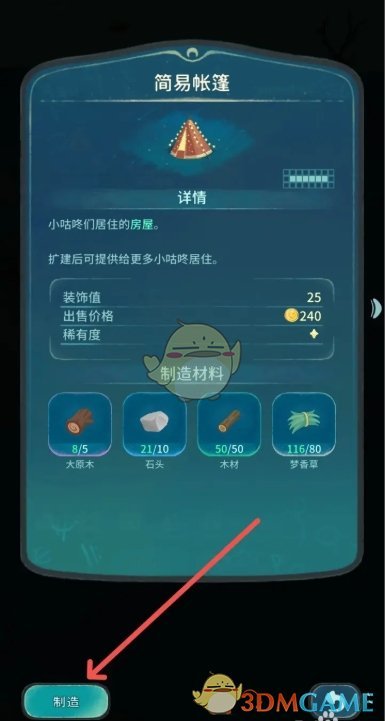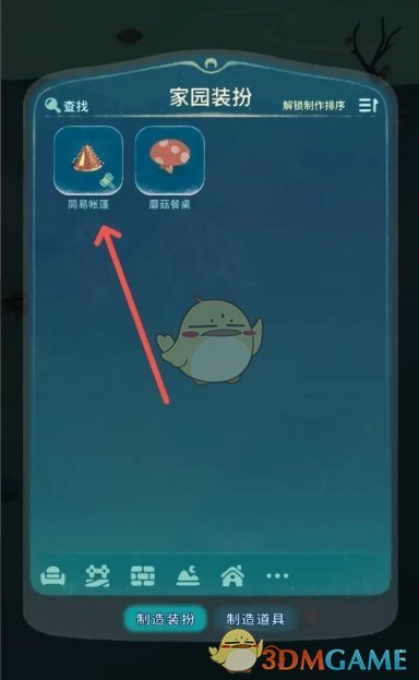答:前往魔方制造机,选择简易帐篷,消耗材料即可完成建造。