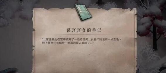 以上就是小编整理带来的《暖雪》终业DLC离宫宫女手记获取方法分享,更多精彩内容,请点击关注手游网!