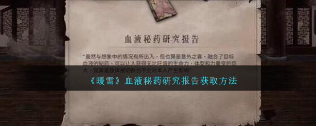 以上就是小编整理带来的《暖雪》血液秘药研究报告获取方法,更多精彩内容,请点击关注手游网!