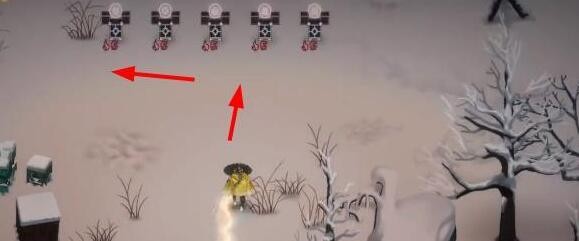 1、更新终业DLC后,前往新剧情序章,在佛堂门外地图中朝着下图所指的方向进行移动。