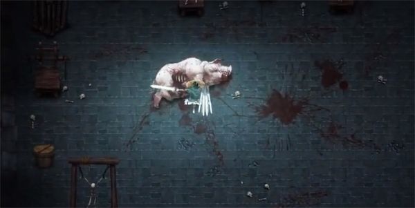 打掉猪之章第一个小BOSS后房间出现休息关卡给予魂、圣物、武器。