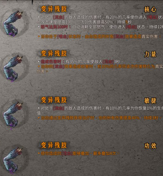 ②仅橙色品质:当你通过变异残肢获得治疗时,你的所有伤害提高40%,持续3秒。